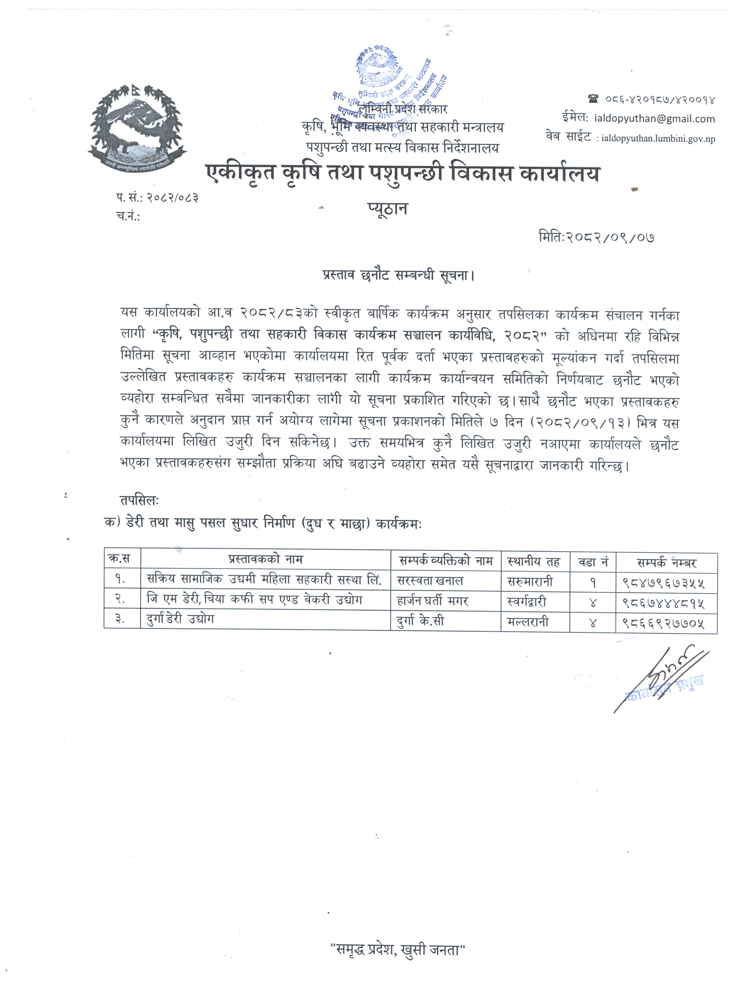 प्रदेश सरकार लुम्बिनी प्रदेश कृषि तथा भूमि व्यवस्था मन्त्रालय पशुपन्छी तथा मत्स्य विकास निर्देशनालय