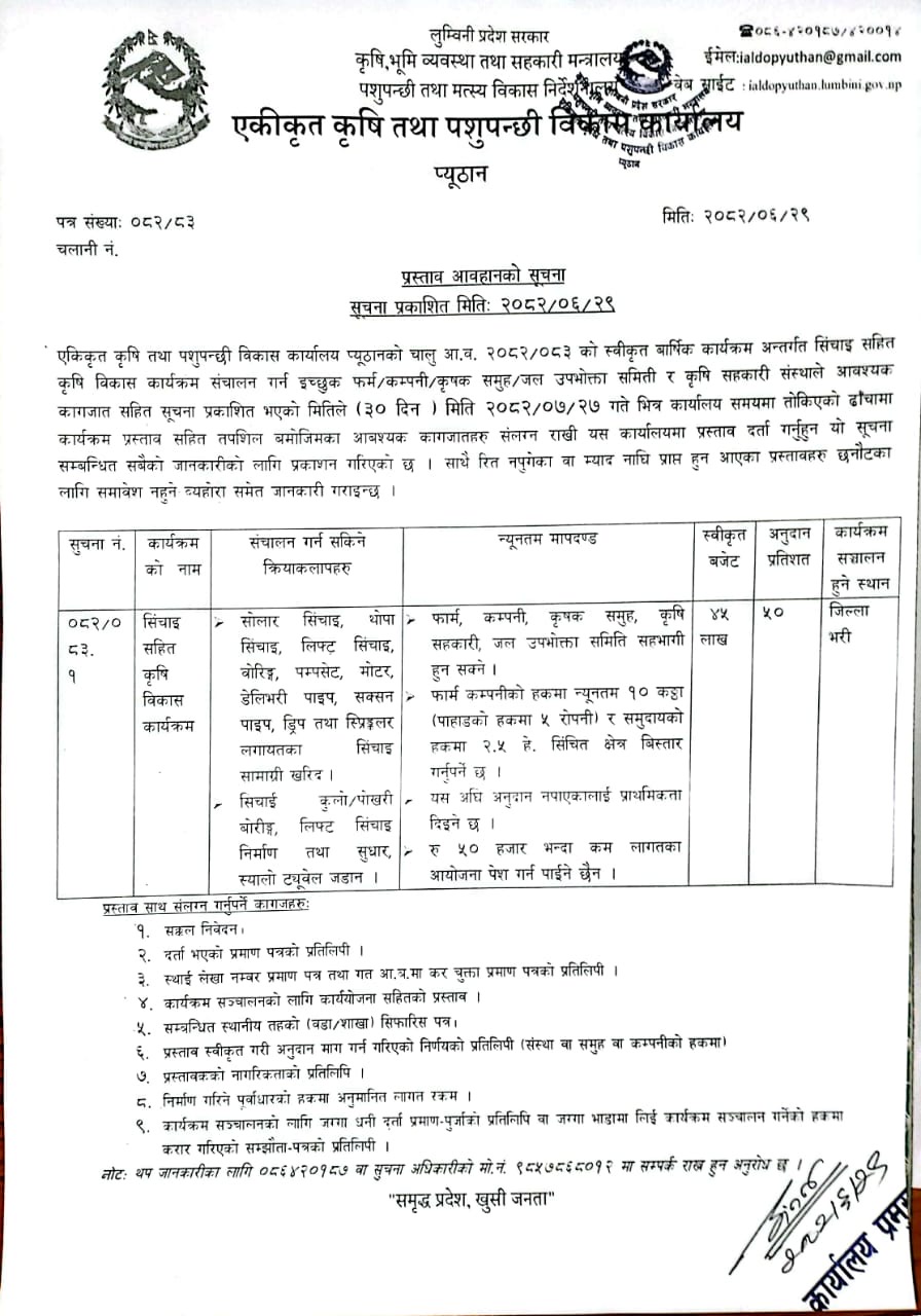 विभिन्न कार्यक्रमहरुमा प्रस्ताव आव्हानको सूचना 2082-07-28